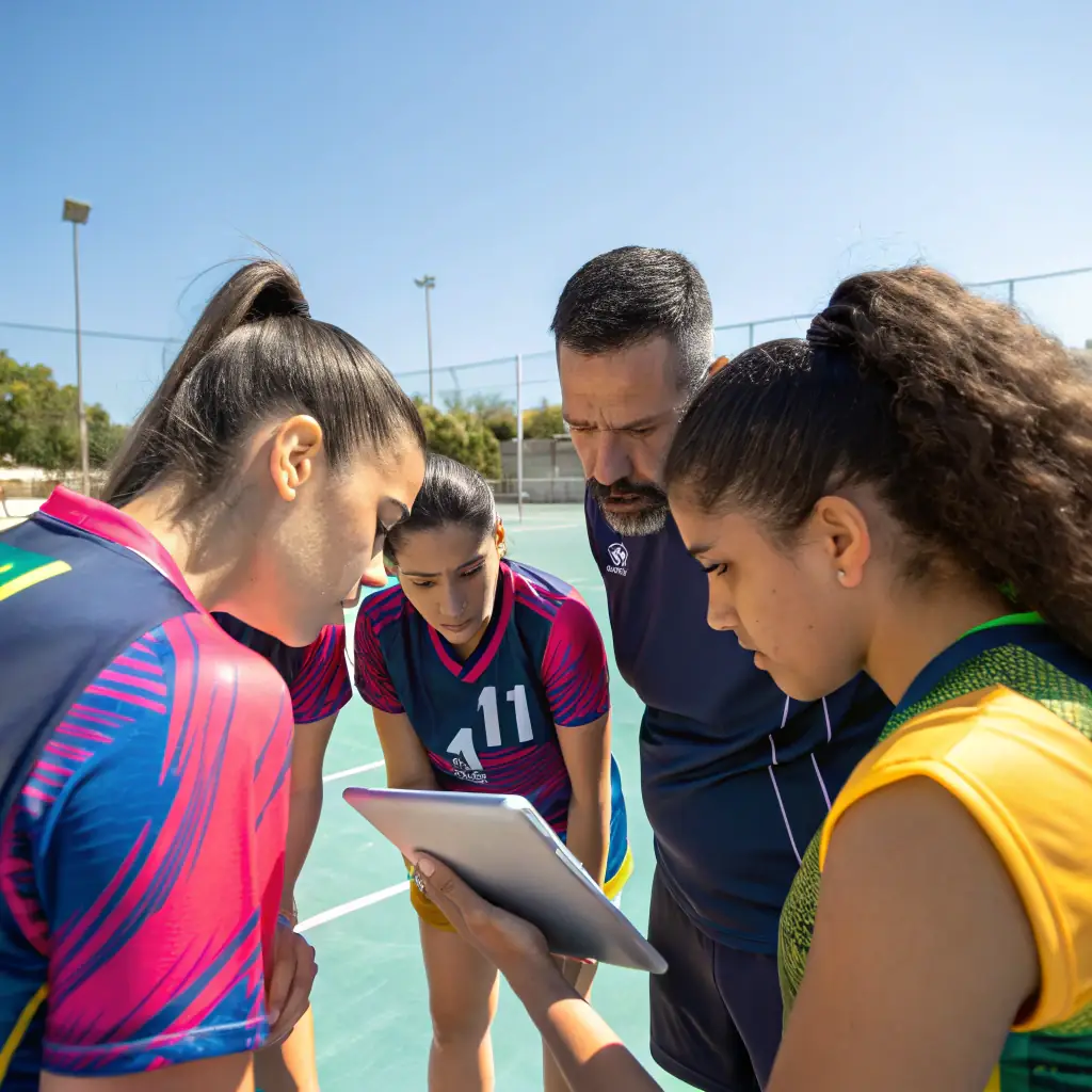 A vibrant image of students playing volleyball on a school court, emphasizing collaboration, communication, and the joy of playing together as a team.